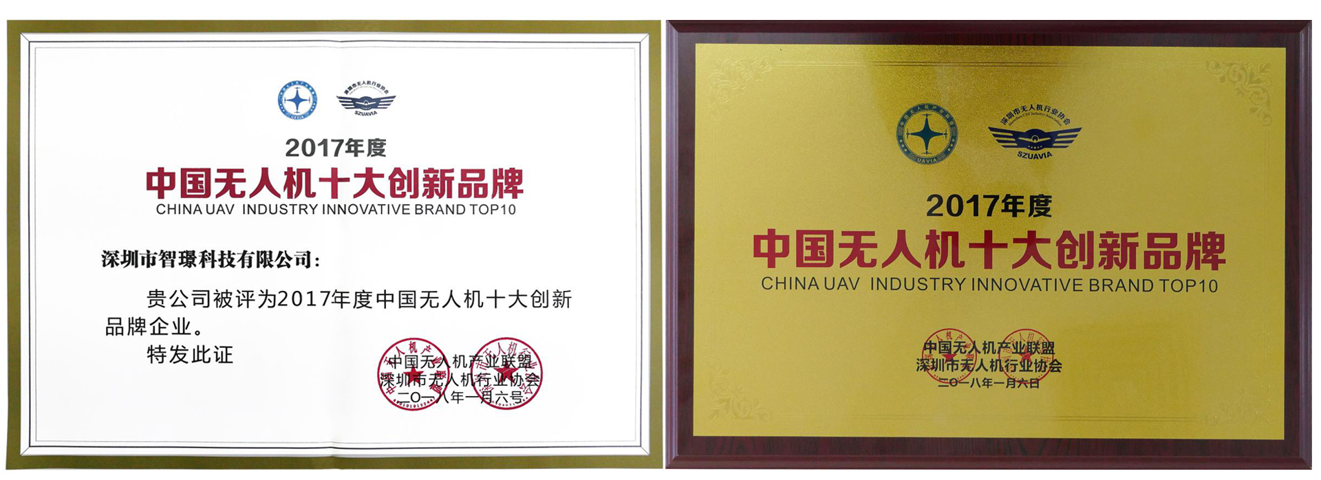 智璟科技榮獲2017年度中國無人機(jī)十大創(chuàng)新品牌