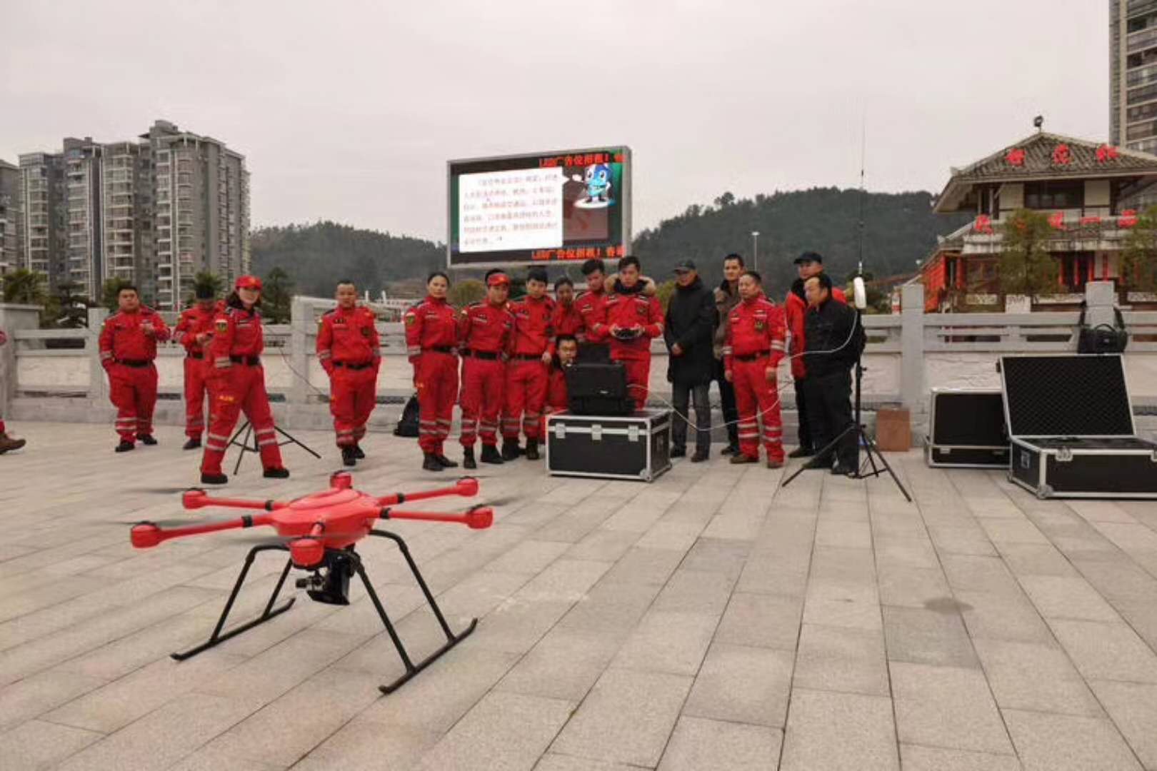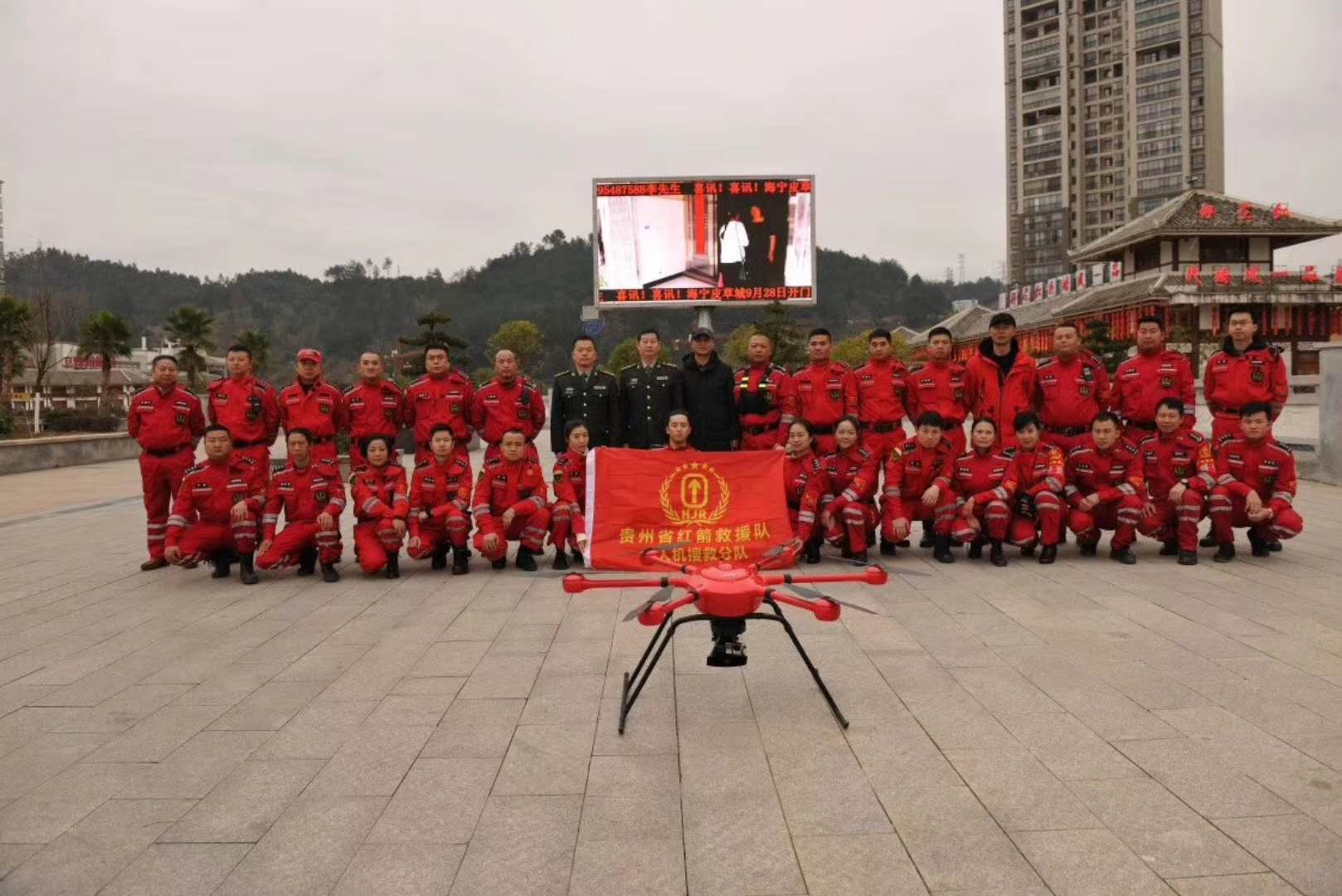 演練圓滿成功后貴州紅箭救援隊與智璟科技T60V2救援無人機合影