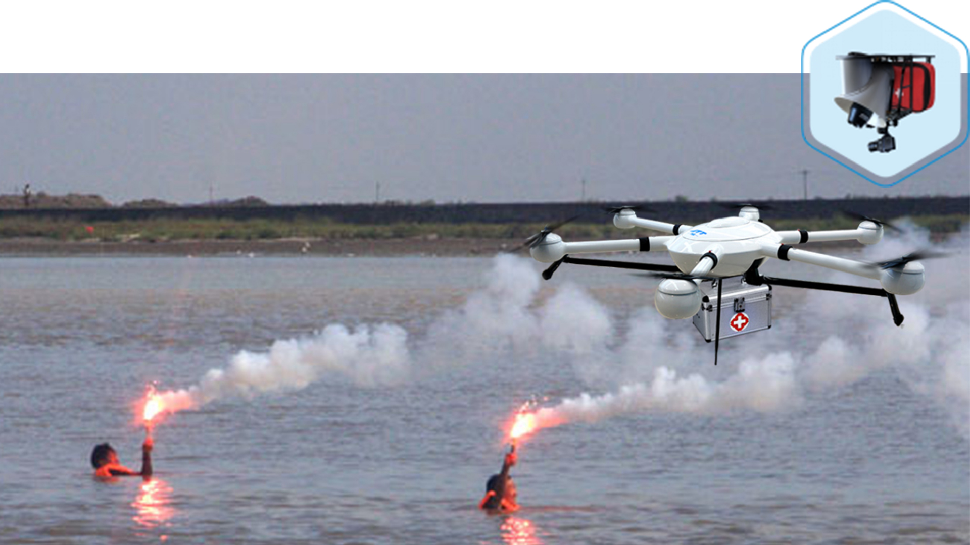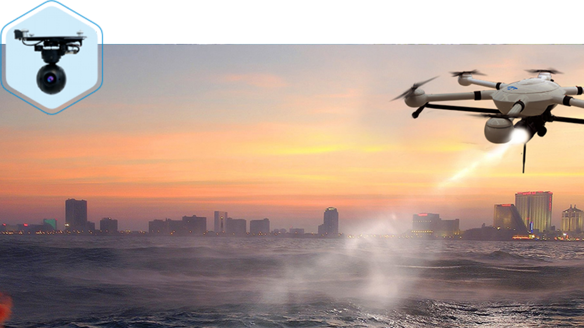 當在海上遇到突發(fā)狀況時,無人機可搭載四合一掛載在事發(fā)高空盤旋監(jiān)控,實時傳送圖像信息至指揮中心,指揮中心可以對現(xiàn)場進行指揮救援行動,并且可以空頭一系列救援物品給需要救助的人員。還可以通過四合一種的喇叭對現(xiàn)場需要救助人員進行疏導(dǎo)和安慰。