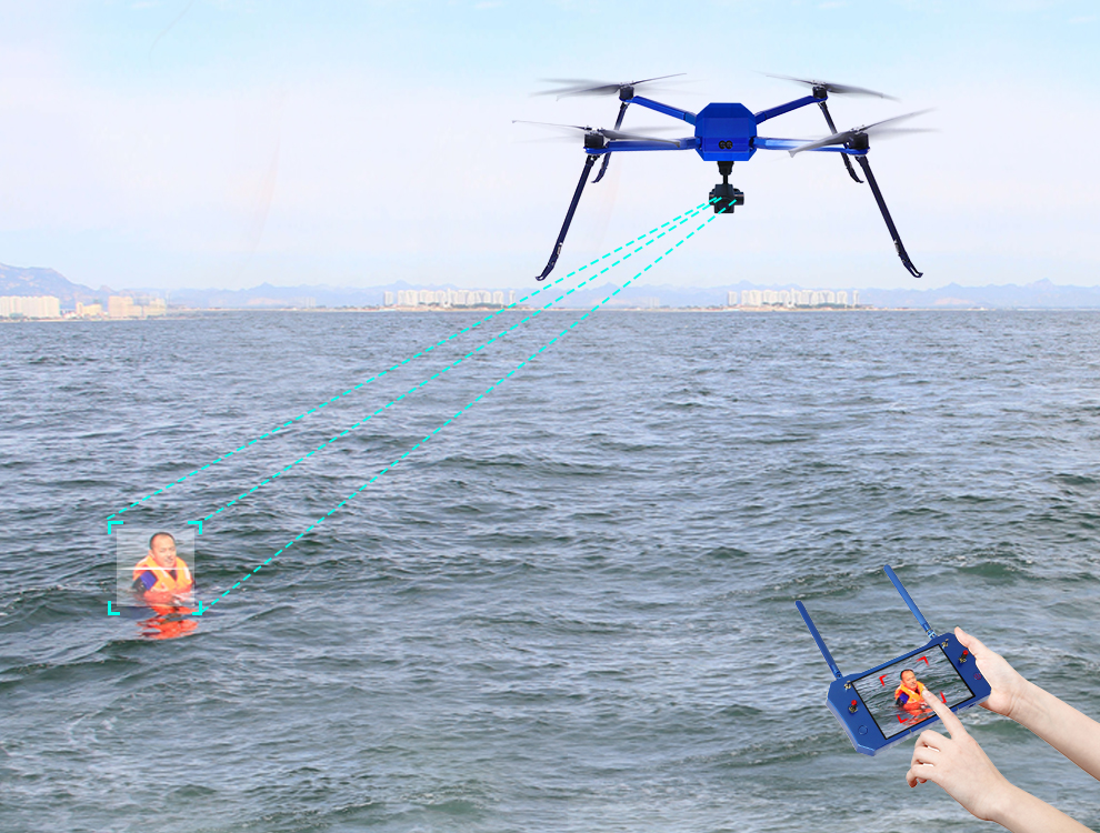 為了更全面的保護(hù)環(huán)境,靠近海島的區(qū)域,往往都不會(huì)有太全面的監(jiān)視,有許多游客包括小孩,有的甚至脫掉救生衣,直接去體驗(yàn)大自然的美好。然而,意外經(jīng)常會(huì)發(fā)生。在深圳某地,有個(gè)小孩為了證明自己會(huì)游泳,腳被海底下大卷的海草給絆住了,一時(shí)間因?yàn)樾幕?,身體在大海上失衡了,隨即危險(xiǎn)襲來(lái)。智璟科技C85無(wú)人機(jī)在海島上巡航時(shí)候,就發(fā)現(xiàn)了水面異樣,隨后快速飛去異樣現(xiàn)場(chǎng)觀看,通過(guò)人臉識(shí)別鎖定人臉后,啟用自動(dòng)跟隨,精準(zhǔn)定位到孩子的具體位置,當(dāng)?shù)孛嬲究吹骄唧w位置后,救援人員隨即派出水上救援機(jī)器人前去營(yíng)救,小孩抓到機(jī)器人后便恢復(fù)了平衡(機(jī)器人擁有75kg的浮力,相當(dāng)于四個(gè)傳統(tǒng)泳圈),之后救援人員開(kāi)啟一鍵自動(dòng)返航,把小孩安全帶回岸上。