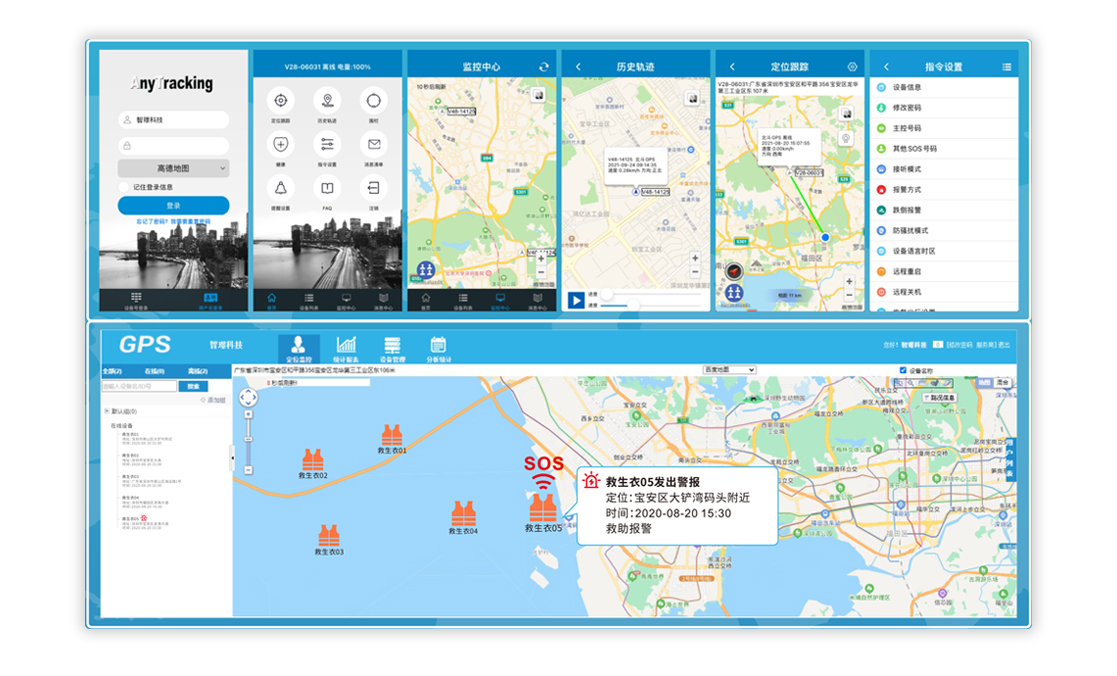 智能救生衣一鍵報(bào)警發(fā)送遇險(xiǎn)人員的求救信號(hào)和坐標(biāo)位置等相關(guān)信息給應(yīng)急救援管理系統(tǒng),系統(tǒng)調(diào)度就近設(shè)備前往救援。