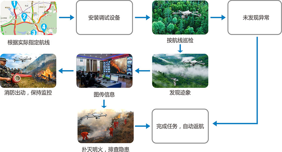 日常巡查,火場偵查,救災(zāi)輔助,疏散火場周圍人員,數(shù)據(jù)回傳等。