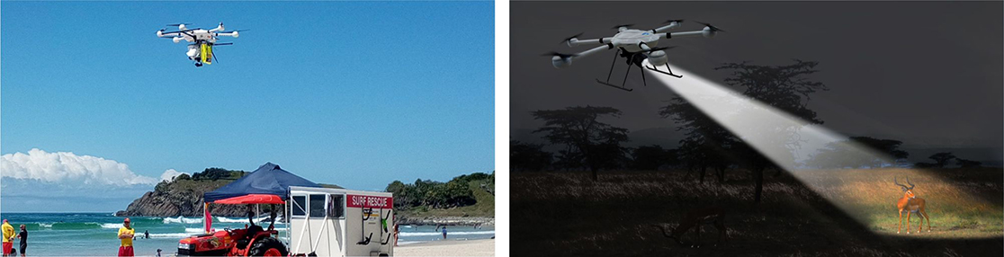 四合一裝備 四合一裝備包括喊話器、高清相機、照明設(shè)備、急救包設(shè)備。 無線傳話距離可達3公里,實時無線喊話,實時高清圖像監(jiān)控,遠距離照明并可以投擲急救包。 可在反恐救援、偵查取證、交通監(jiān)測等中應用。