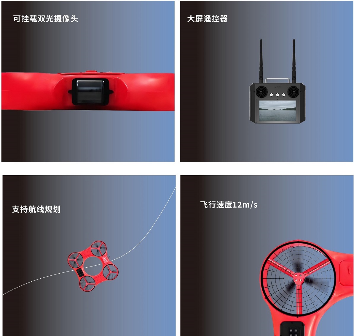 飛行高度、速度等參數(shù)可設(shè)置,飛行救生圈具有北斗定位,空中能夠定點懸停;