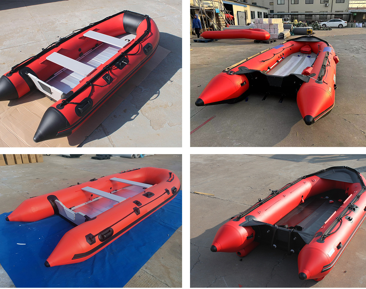 型號(hào):ZJ015 尺寸:3800mm*1770mm±30mm 氣室:3個(gè) 船體質(zhì)量:80kg 可載人數(shù):8人 承載貨物:800kg 尾部設(shè)置舷外機(jī)固定 架底板材質(zhì):防滑鋁合金材質(zhì),并由鋁合金縱梁加固 船底深V型設(shè)計(jì),水阻小