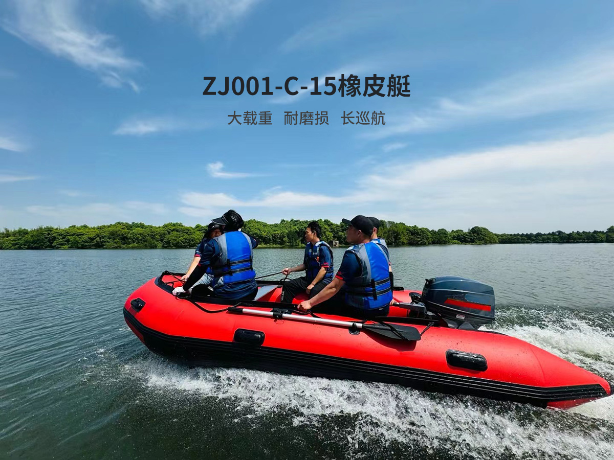 型號(hào):ZJ001-C-15 尺寸:艇長(zhǎng)430cm,艇寬195cm 氣囊直徑:50cm 翹首高度:70cm 氣室數(shù)量:5個(gè) 設(shè)計(jì)最大載員:9人 設(shè)計(jì)最大載重:1000kg 設(shè)計(jì)最大航速40km/h
