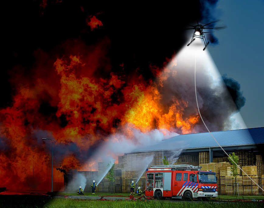 系留無人機為常見無人機續(xù)航短的弱點提供了解決方案,打破無人機續(xù)航時間的限制,為無人機長時間駐空提供能量支持。TD01系留無人機,可手動操作或遠程控制,無人機飛行平臺通過掛載不同任務(wù)載荷實現(xiàn)不同的應(yīng)用場景,可隨人、車、船等一切可移動設(shè)備轉(zhuǎn)移地點目標,主要用于應(yīng)急照明、視頻監(jiān)控、信號發(fā)射、電視直播和單兵偵察等。